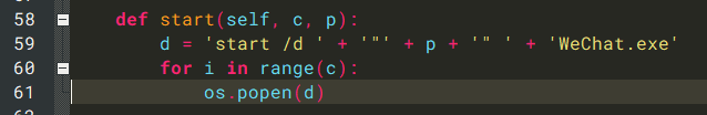 d = 'start /d ' + '"' + p + '" ' + 'WeChat.exe'