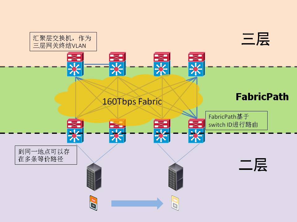 FabricPath的前提是不破坏现有的二层交换行为,FabricPath网络对已部署的接入设备来说是一个透明连接。